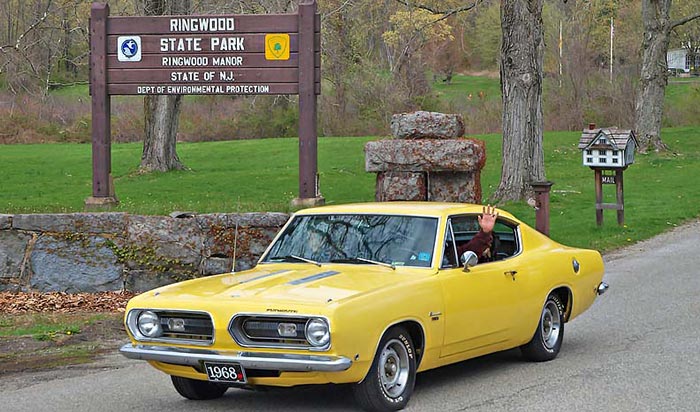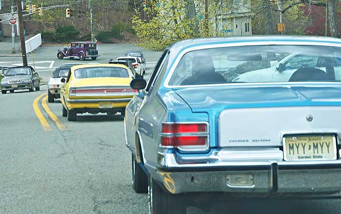 Gene was near the middle of the line, just behind Steve White’s new Charger Daytona. In the next shot, a guy in a Cherokee decided he belonged in the group, and cut in ahead of our treasurer.